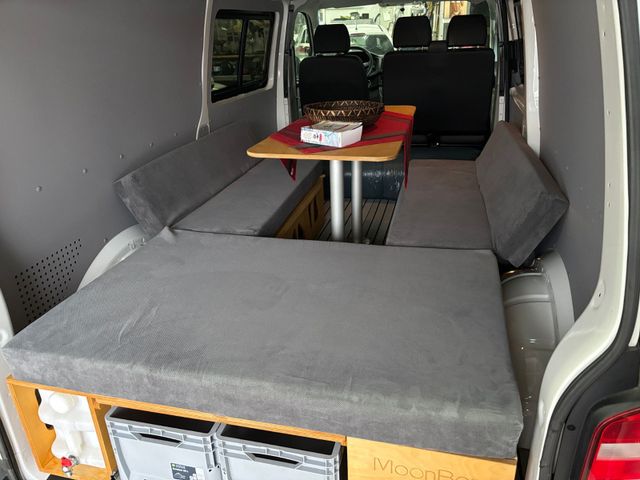 Campingbox von MoonBox inklusive Gaskocher, Wasserbehälter und 2x Multifunktionskisten,alle Sitz und Liegekissen sowie eine extra Rollmatratze für noch mehr Comfort.